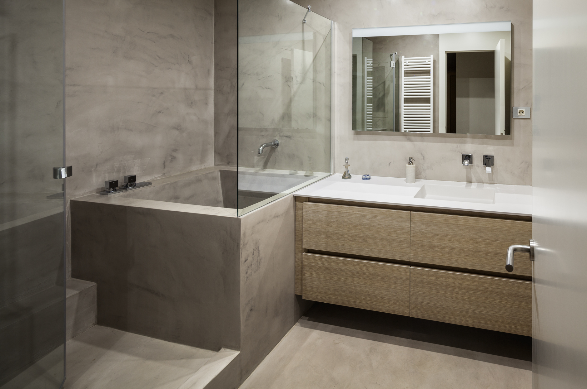 La aplicación de este material abarca desde suelos a paredes, zonas de estar, piscinas, baños, cocinas, muebles, o incluso techos interiores y exteriores. Nos gusta utilizar el microcemento por su versatilidad, textura, acabado, y capacidad de combinar con madera, vidrio, metal, entre otros materiales permitiendo lograr resultados muy creativos siguiendo la imaginación del decorador, arquitecto o particular.